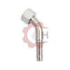 Terminal C.90º fêmea, de aço carbono, sem solda, rosca Métrica, Série Pesada, cone 24°, com O’Ring, para prensar em mangueira hidráulica.