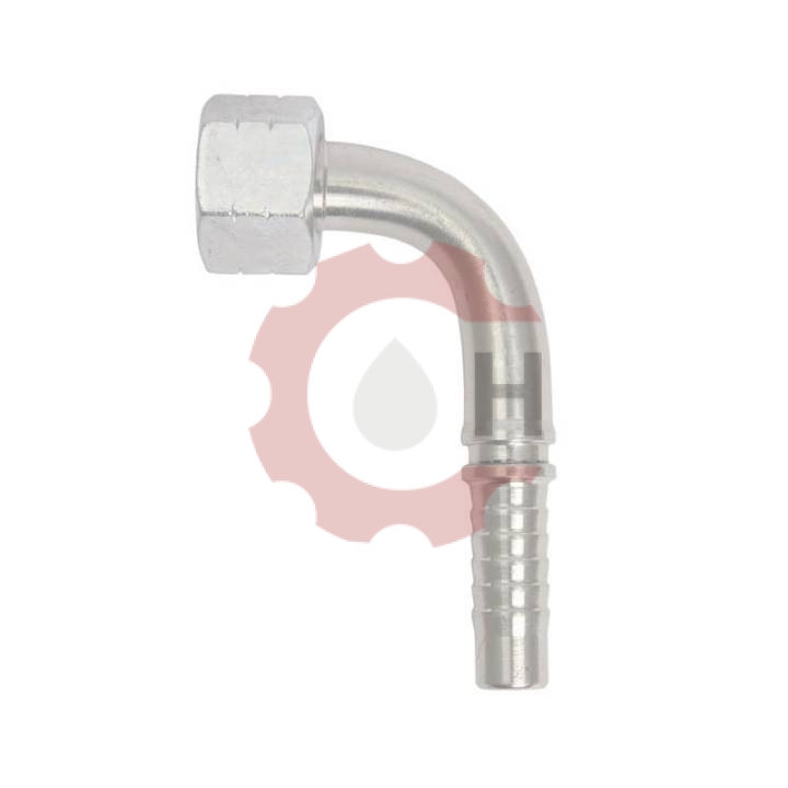 Terminal C.90° sem solda, de aço carbono, ORFS, O’ring face seal, face plana, para prensar em mangueira hidráulica.